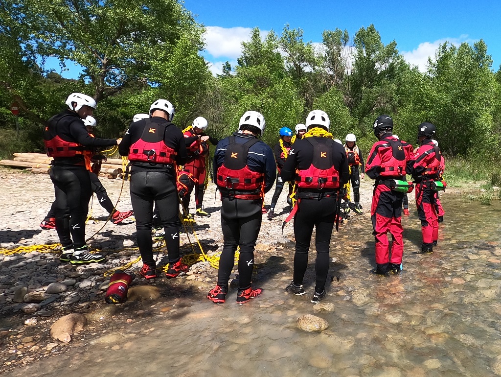 Este entorno permite trabajar con corrientes y contracorrientes reales, donde el alumnado debe resolver situaciones simuladas de rescate utilizando equipamiento profesional: